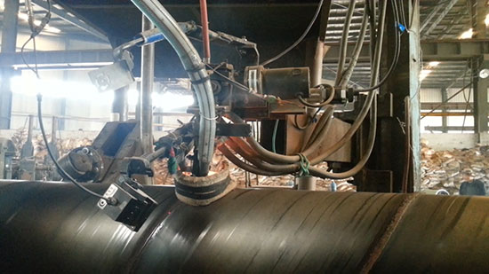 螺旋管在我國主要應(yīng)用在石油工業(yè)和管道建設(shè)事業(yè)中。在高壓、高強(qiáng)度、長距離輸送等方面對螺旋鋼管的質(zhì)量要求越來越高。然而螺旋鋼管在生產(chǎn)過程中,由于鋼板的橫向竄動、成型角的調(diào)整、導(dǎo)電嘴的磨損等諸多原因,時常會出現(xiàn)焊偏現(xiàn)象。如何采用一種行之有效的辦法,實(shí)現(xiàn)螺旋鋼管內(nèi)外焊縫的自動跟蹤,徹底解決內(nèi)外焊焊偏問題,一直是各螺旋鋼管廠家技術(shù)人員研究的重要課題。