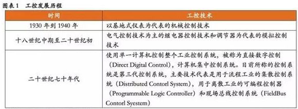 工業(yè)過程大致分為連續(xù)過程工業(yè)、離散過程工業(yè)、間隙過程工業(yè)三大類,隨著工業(yè)自動(dòng)化技術(shù)的發(fā)展,三類工業(yè)過程衍生出過程控制、離散控制和間隙控制。1930年以來,工控技術(shù)經(jīng)歷了三個(gè)主要階段。