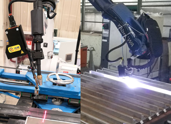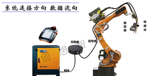 焊縫跟蹤器將檢測(cè)的數(shù)據(jù)傳輸給機(jī)器人控制器,實(shí)現(xiàn)偏差糾正功能。