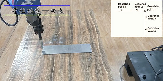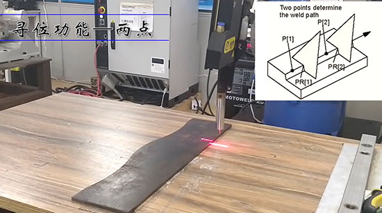 測(cè)量平面焊縫的兩個(gè)點(diǎn),計(jì)算焊縫的偏移,將偏差補(bǔ)償?shù)绞窘厅c(diǎn)上。