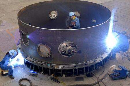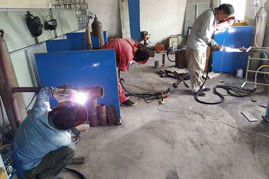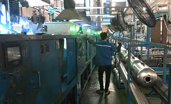 以壓力容器生產(chǎn)企業(yè)轉(zhuǎn)型升級為例。傳統(tǒng)的企業(yè)生產(chǎn)焊接車間,在一個工位上,總會看到一幕幕工人頭戴面罩、手握焊槍,在一個罐體內(nèi)進行著焊接作業(yè),邊上還有一臺焊接設備,而且大部分都是一臺焊接設備需要至少兩個人配合著使用,一個人做操作,另外一個人要跟蹤焊道的焊接,看其是否偏離焊道。