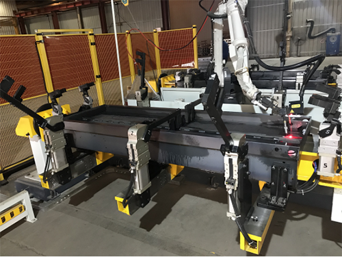 創(chuàng)想智控的焊縫跟蹤系統(tǒng)通過(guò)傳感設(shè)備實(shí)現(xiàn)對(duì)焊縫的數(shù)據(jù)進(jìn)行采集、分析,獲取焊縫的尺寸、坐標(biāo)、形狀等信息,按照事先設(shè)定的增益、偏差等參數(shù)值,對(duì)焊槍上下和左右方向進(jìn)行補(bǔ)償。能夠在軌道交通鋼平臺(tái)焊接中使用兩點(diǎn)尋位功能,掃描長(zhǎng)直焊縫;解決客戶工裝定位不準(zhǔn)、熱變形等導(dǎo)致的焊縫偏差問(wèn)題;可糾正焊縫位置,引導(dǎo)機(jī)器人焊接。針對(duì)客車梁焊接機(jī)器人焊縫跟蹤使用尋位功能解決工裝偏差;節(jié)省人工成本,簡(jiǎn)化編程、提升焊接效率。也能夠應(yīng)用于其它軌道制造行業(yè),解決客戶工件因上料導(dǎo)致的焊縫左右偏差問(wèn)題。