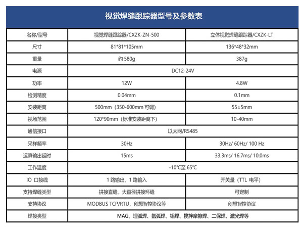 創(chuàng)想智控的視覺焊縫跟蹤器也分為兩款,也就是立體視覺焊縫跟蹤器CXZK-LT和視覺焊縫跟蹤器CXZK-AN-500,不同的型號,特點和作用自然也不相同,下面就介紹兩款產(chǎn)品不同的特點。
