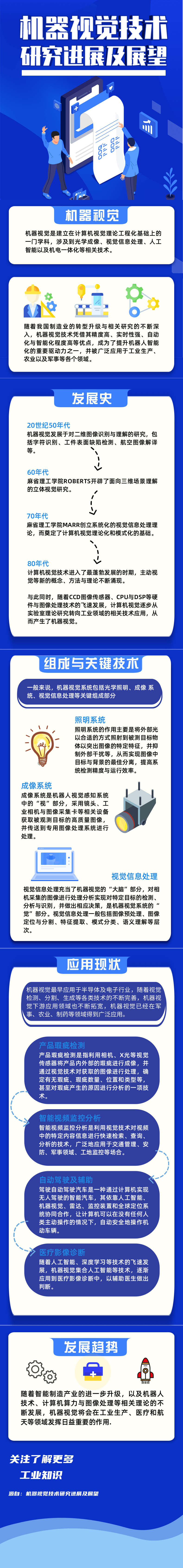 機器視覺是建立在計算機視覺理論工程化基礎(chǔ)上的一門學科,涉及到光學成像、視覺信息處理、人工智能以及機電一體化等相關(guān)技術(shù)。隨著我國制造業(yè)的轉(zhuǎn)型升級與相關(guān)研究的不斷深入,機器視覺技術(shù)憑借其精度高、實時性強、自動化與智能化程度高等優(yōu)點,成為了提升機器人智能化的重要驅(qū)動力之一,并被廣泛應用于工業(yè)生產(chǎn)、農(nóng)業(yè)以及軍事等各個領(lǐng)域。