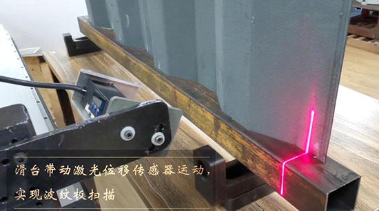 滑臺(tái)帶動(dòng)激光位移傳感器運(yùn)動(dòng),實(shí)現(xiàn)波紋板掃描。